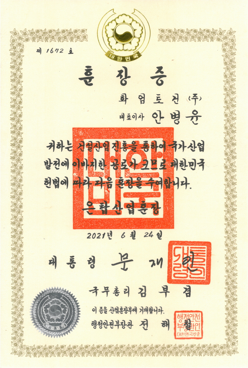 2021년 6월 24일 은탑산업훈장을 수상하였습니다.